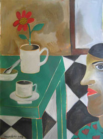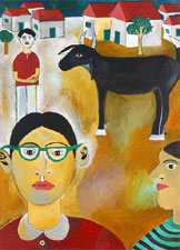 NANDINI GOUD: Daughter of senior and renowned artist, Laxma Goud, obtained her Bachelor's degree in painting as well as her Master's degree in printmaking, from the Faculty of Fine Arts at the MS University in Baroda. Her paintings & graphics reflect her preoccupation with Hyderabad, the place she unequivocally calls home. Her work tries to capture the day-to-day profile of a typical street in Hyderabad. Her works have been sold in auctions held by the world famous auction house, Christie's, and find place in the Herwitz Collection, which is amongst the best of Indian contemporary art in the world today. |